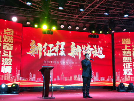 豪情歡歌辭舊歲,喜氣開篇迎新年!2020年1月8日下午,遼寧凱為生物技術(shù)有限公司“新征程 新跨越”新年聯(lián)歡會暨員工表彰大會在名仕國際俱樂部三樓宴會廳隆重舉行,公司總裁王鐵良攜公司高管及全體員工100余人歡聚一堂,共度聯(lián)歡!