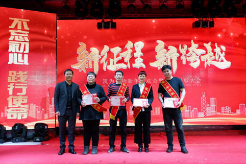 聯(lián)歡的同時進(jìn)入了一年一度公司重頭戲——表彰環(huán)節(jié)。凱為過去一年的輝煌成就,離不開所有凱為人的辛勤付出。首先王總表彰了與凱為共同奮斗的十年、六年的忠誠衛(wèi)士,其次趙總表彰了各區(qū)域的銷售標(biāo)兵及各部門的優(yōu)秀員工,你們是凱為的排頭兵,你們是凱為的中流砥柱,你們是最美凱為人!表彰形式花樣翻新,現(xiàn)金大紅包、歡樂砸金蛋、微信紅包雨........一份份禮品、一個個紅包、一次次表彰,都彰顯著凱為人披荊斬棘不負(fù)韶華的拼搏與奮斗!都書寫著凱為人實現(xiàn)愿景不辱使命的成就與輝煌??!